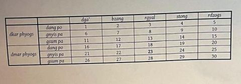 - Śukla (དཀར་པོ་, dkar po)